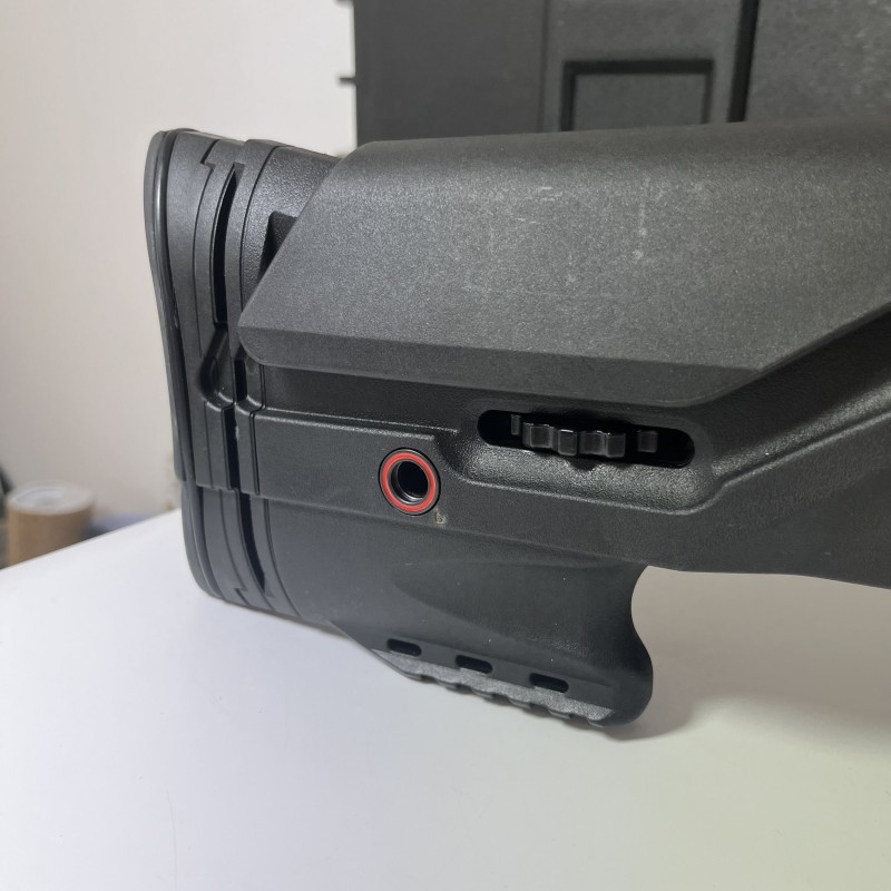 Crosse avec busc réglable en option : La crosse synthétique parfaitement ergonomique renforcée de fibre de verre allie légèreté et durabilité. L'option de busc fixe ou réglable permet une harmonie parfaite entre la carabine et le tireur.