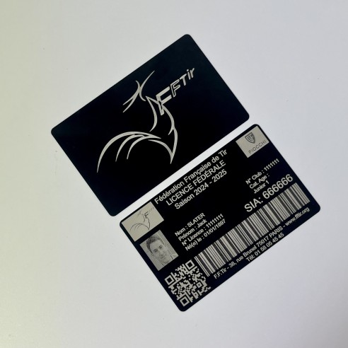 Carte Licence de tir sportif gravée en aluminium